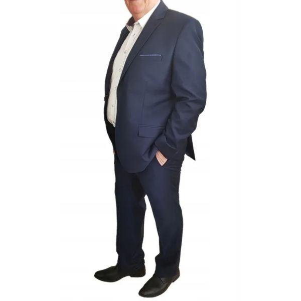 Granatowy garnitur męski Lammas od marki Recman to kwintesencja nowoczesnej elegancji. Wykonany w fasonie Slim Fit, podkreśla sylwetkę, zapewniając jednocześnie wyjątkowy komfort noszenia dzięki dwóm szlicom z tyłu. Klasyczna marynarka z otwartymi klapami, skośną brustaszą i prostymi kieszeniami z patkami doskonale sprawdzi się w formalnych stylizacjach. Wysokiej jakości tkanina, będąca mieszanką poliestru, wiskozy i elastanu, gwarantuje trwałość i wygodę w użytkowaniu przez cały rok. Na uwagę zasługuje również precyzyjne wykonanie z najwyższą dbałością o detale, co jest znakiem rozpoznawczym polskiej marki z wieloletnią tradycją w krawiectwie. Model dedykowany mężczyznom o wzroście 194 cm i obwodzie klatki piersiowej 120 cm wyróżnia się uniwersalnością i elegancją. Garnitur dostępny jest również w klasycznej czerni, a jego doskonałym uzupełnieniem będą zaprojektowane dodatki, jak stylowy krawat Paisley. To wybór, który łączy tradycję z najnowszymi trendami.